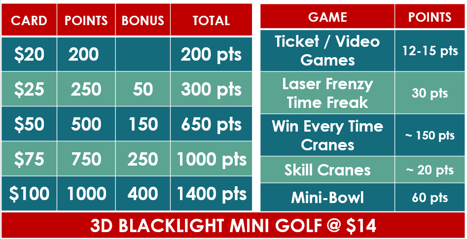 – Our 9-Hole 3D Blacklight Glow-in-the-Dark Pirate-Themed Mini-Golf has a la carte pricing.